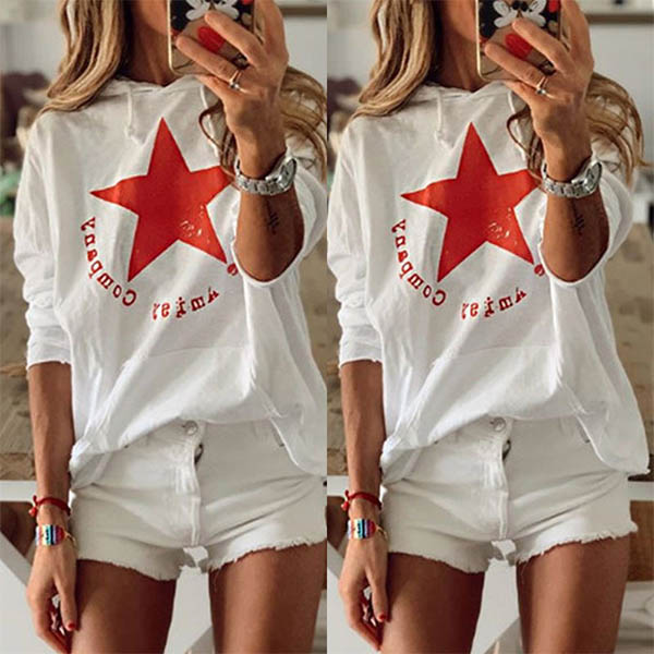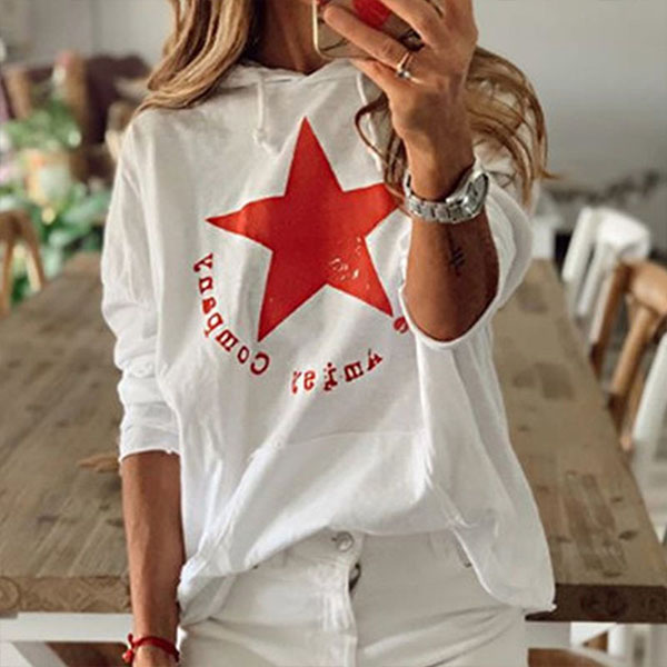 Fashion Star Printed Long Sleeve Hooded Sweatshirt