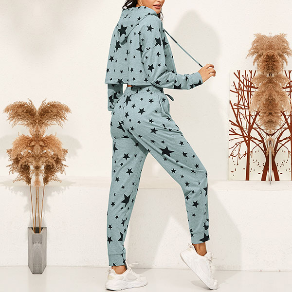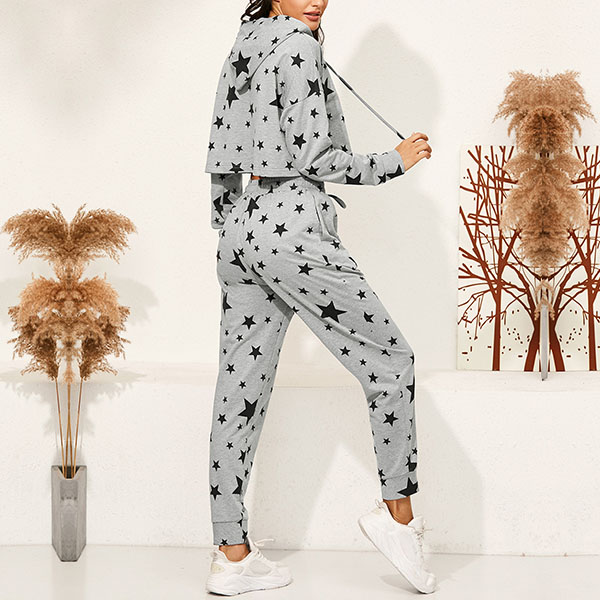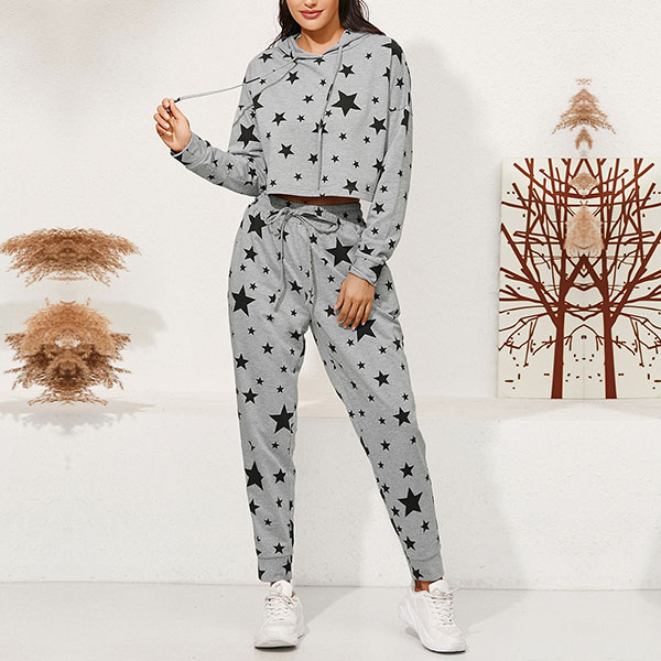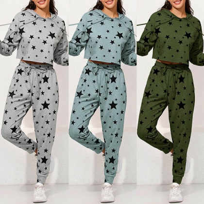 Fashion Star Printed Long Sleeve Hooded Sweatshirt + Pants Two-piece Set