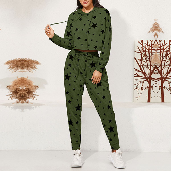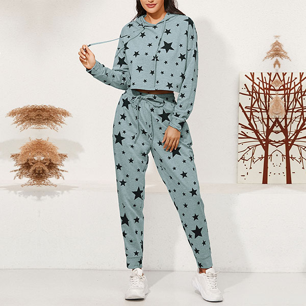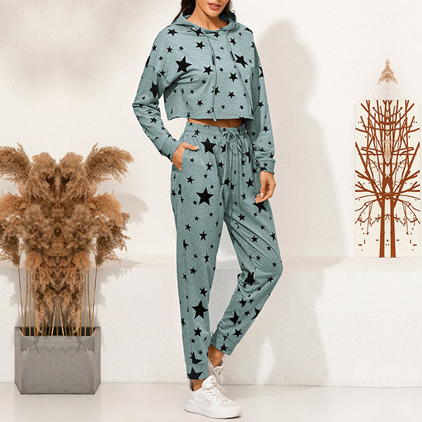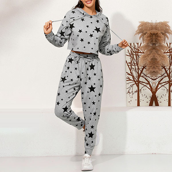 As for a laid-back yet stylish daily style,you can just slip into this two-piece set. The star printed details make it look so eye-catching and stylish. Including a long sleeve hooded sweatshirt and a pants,its soft and breathable fabric can ensure you a comfortable day. Start your wonderful day with this two-piece set.