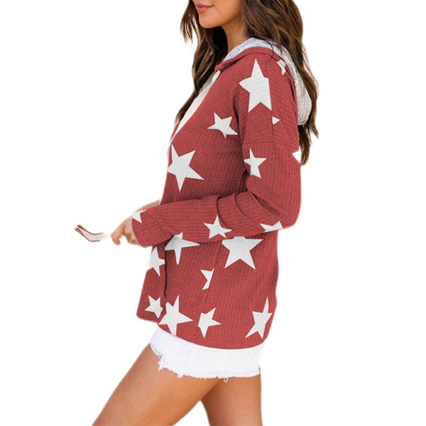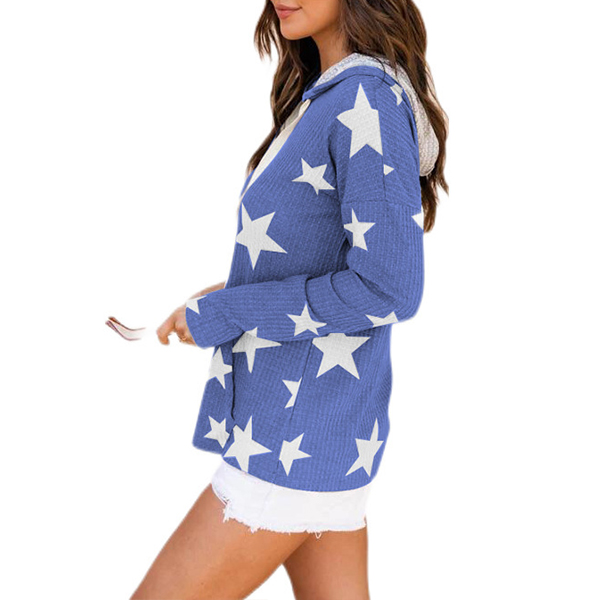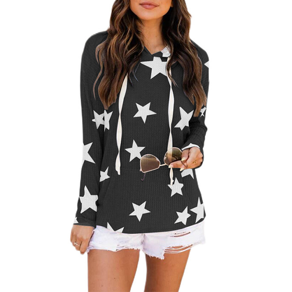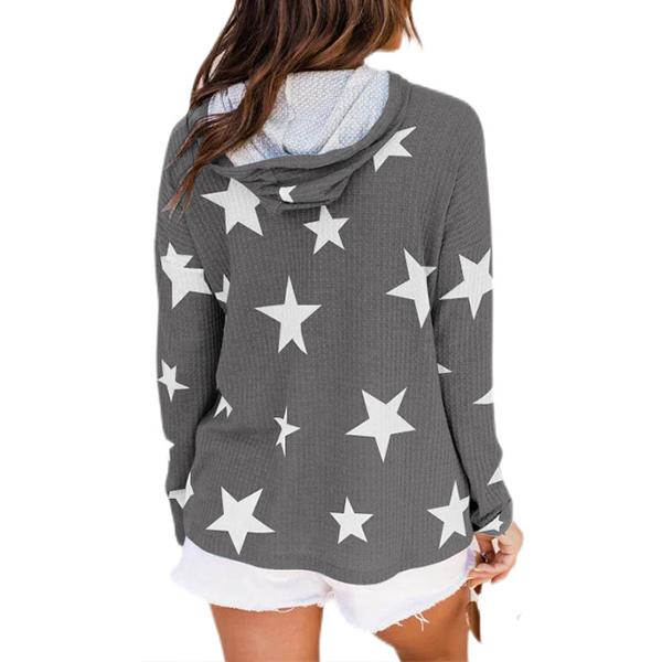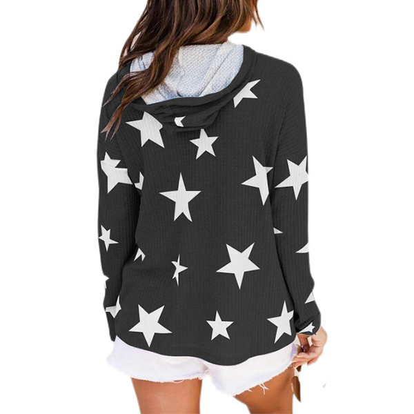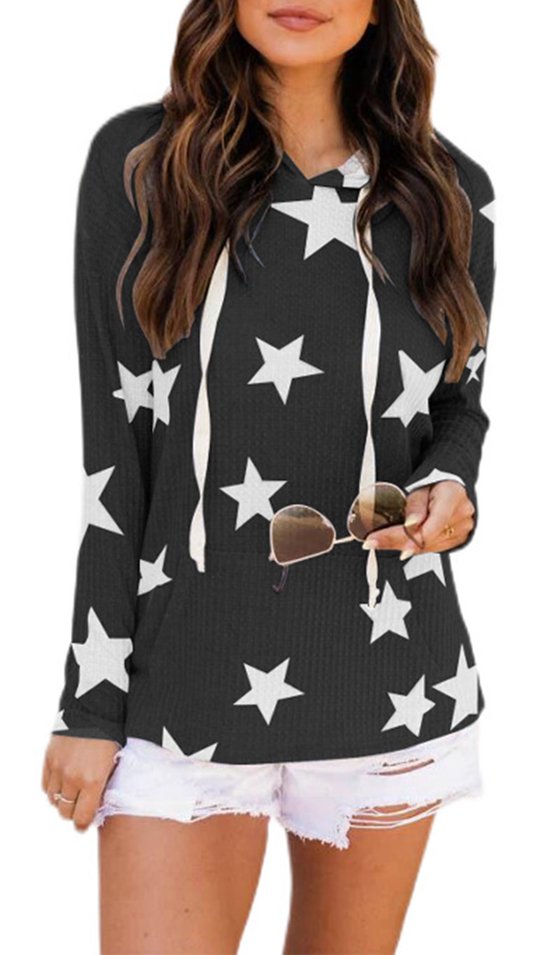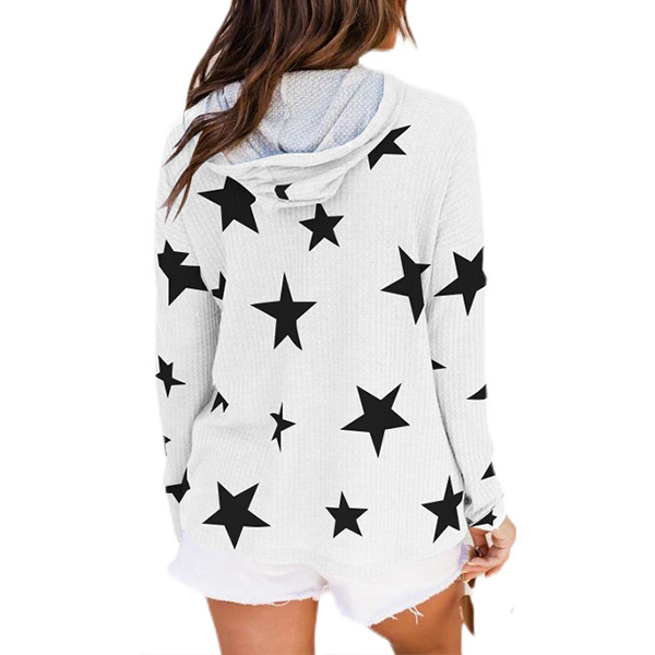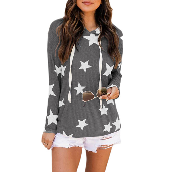 The star printed details make it look romantic yet eye-catching. Its long sleeve,hooded silhouette