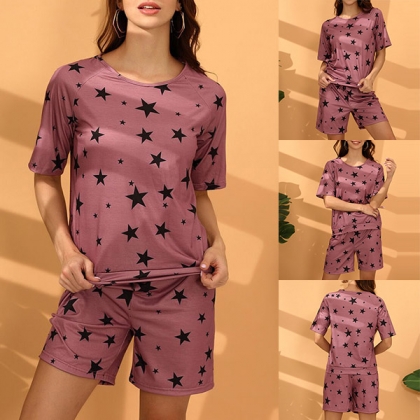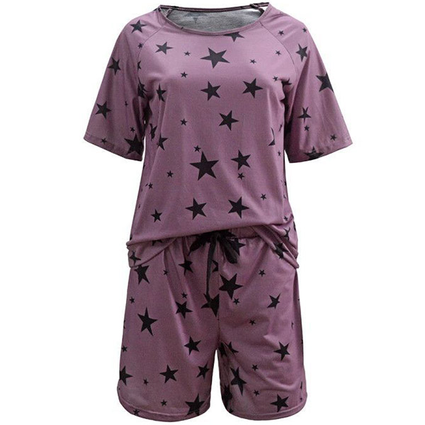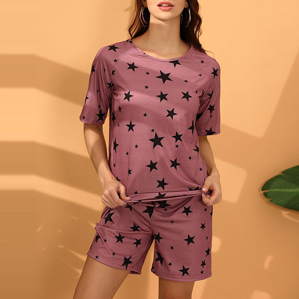 Your home time and sleeping time call for such a cozy yet stylish two-piece set. the star printed details make it look more eye-catching and stylish. Including a short sleeve round neck t-shirt and a shorts,its super soft and breathable fabric can give you an utmost comfort. Enjoy your home time and sleeping time with this two-piece set!