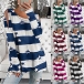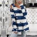 Fashion Star Striped Printed Long Sleeve Round Neck Slit Hem T-shirt