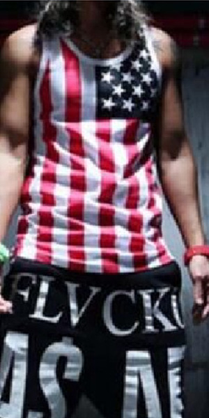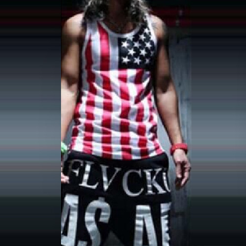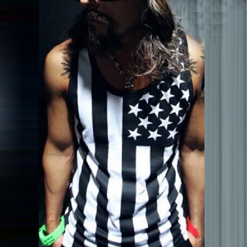 It is so cool! Like American flag printed pattern, this pair of tank tops is outfitted with star and