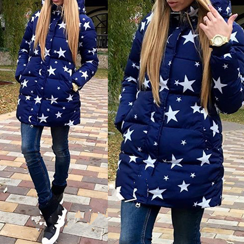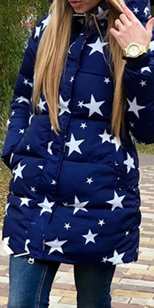 We would send you a beautiful starry sky via this padded coat and wish you have a romantic and happy