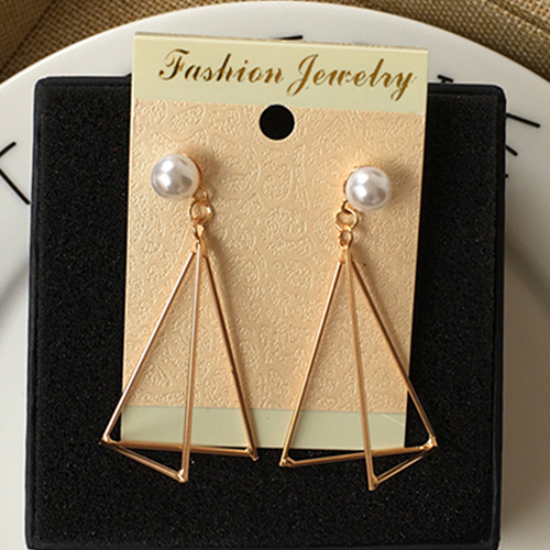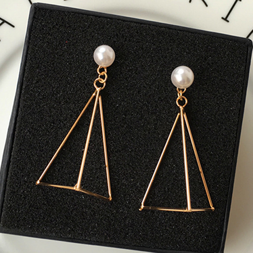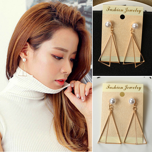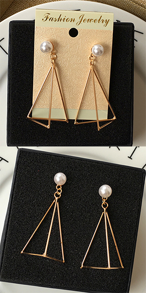 earring looks so cute and concise. It is decorated with triangle shaped design and sparkle delicate