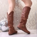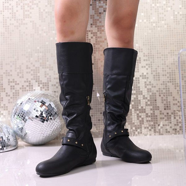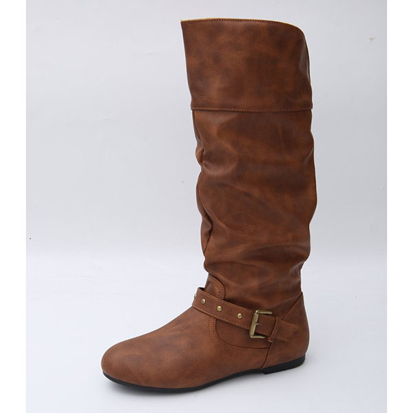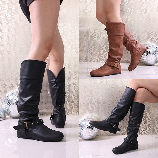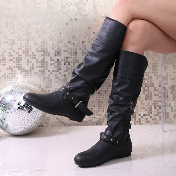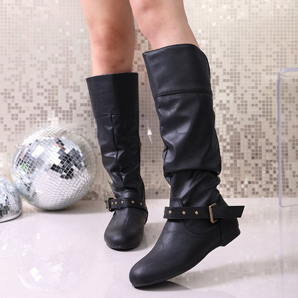 Fashion Strap Side Buckle Round Toe Flat Draped Boots
