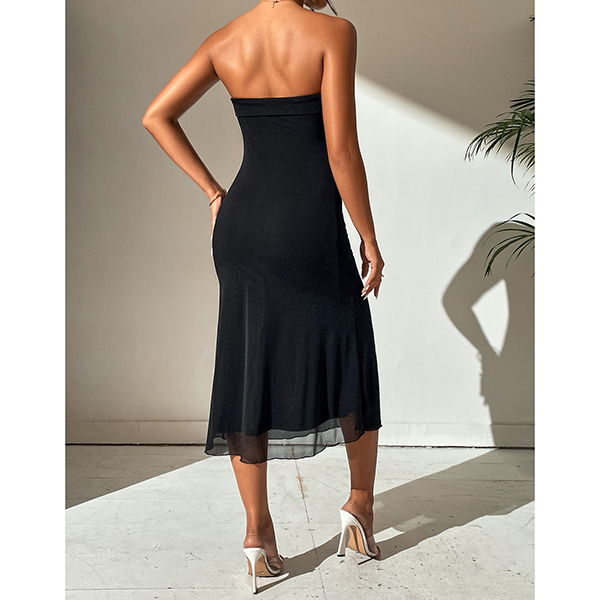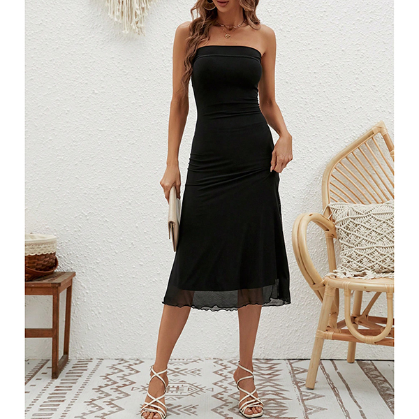 Turn heads at your next event in this strapless bodycon dress. The figure-hugging silhouette accentuates your curves while the strapless design adds a touch of sophistication and allure. Perfect for cocktail parties, night outs, or special occasions, this dress combines comfort with effortless glamour.