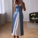 Fashion Strapless Contrast Color Slit Fake-two-piece Dress