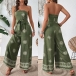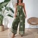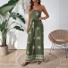 Fashion Strapless Floral Printed Self-tie Straight-cut Jumpsuit