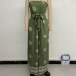 This is a chic and trendy jumpsuit that exudes sophistication and flair. The strapless design adds a touch of elegance, and the floral print adds a pop of color and pattern, creating a playful and eye-catching look that is perfect for both casual and dressy occasions. Pair with sandals for a more casual daytime look.