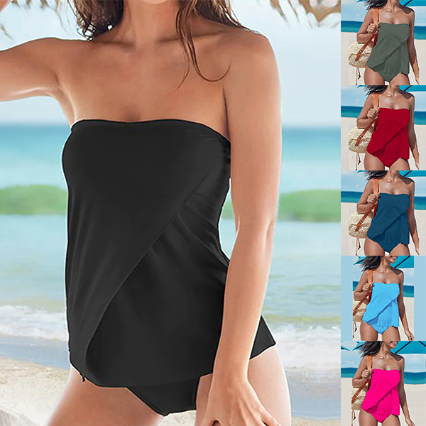 This monokini features a chic strapless design and a daring front slit, offering a stylish and alluring look. Perfect for soaking up the sun, this monokini combines fashion and comfort.