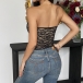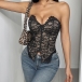 Fashion Strapless Lace Irregular Hemline Corset Crop Top