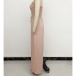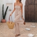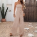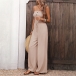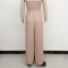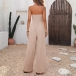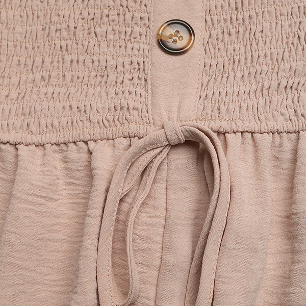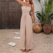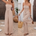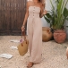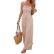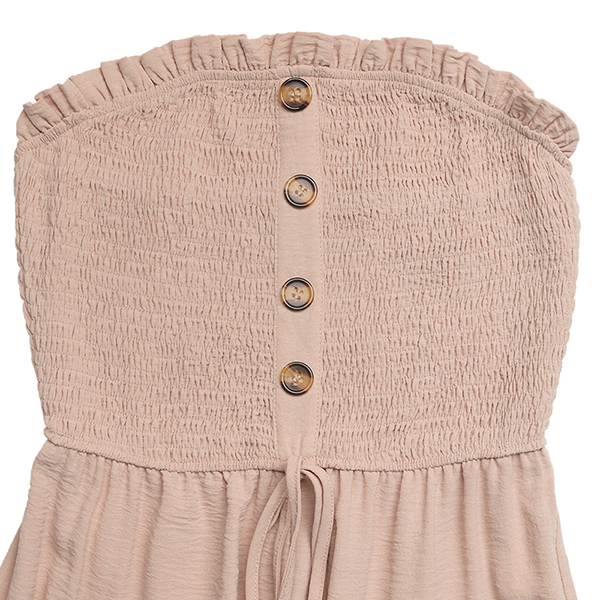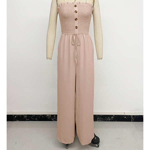 Fashion Strapless Smocked Bodice Front Button Drawstring Waist Straight-cut Jumpsuit