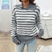 This stylish sweater features a classic lapel collar and long sleeves, offering a blend of comfort and sophistication. The eye-catching stripe pattern adds a modern twist, making it perfect for layering or wearing on its own. Pair it with jeans or tailored trousers for a chic look !