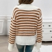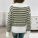 Fashion Stripe Pattern Lapel Collar Long Sleeve Knitted Sweater