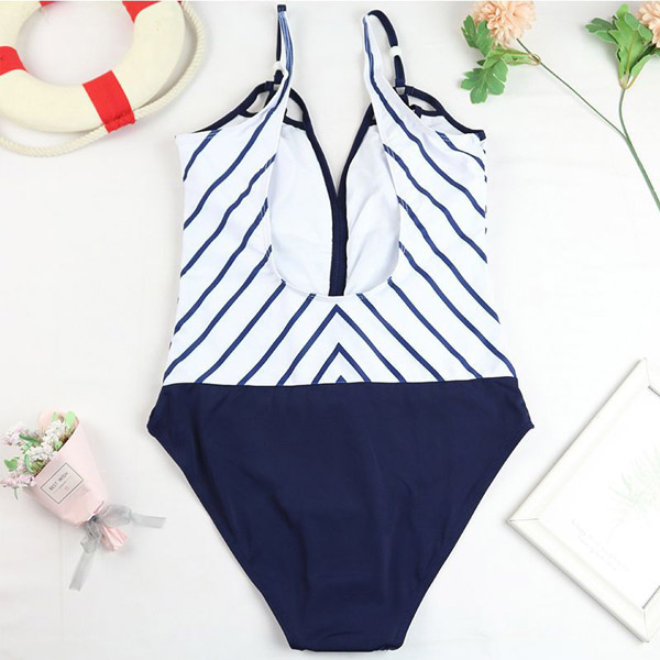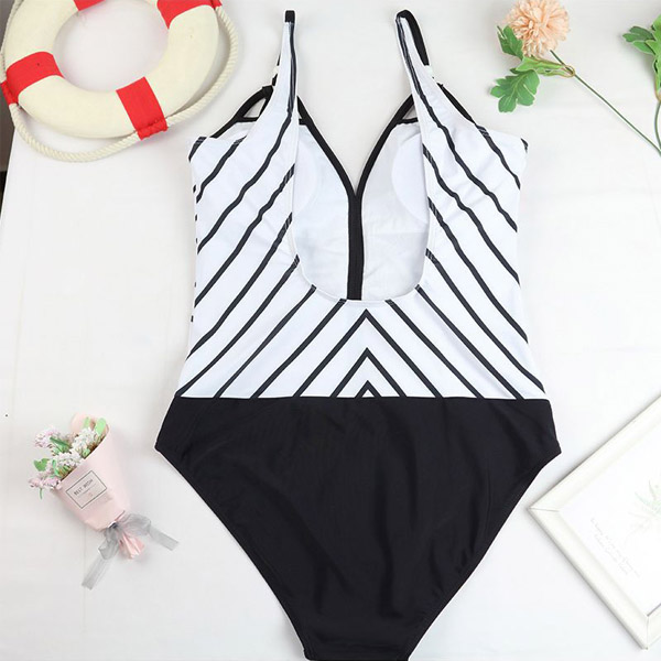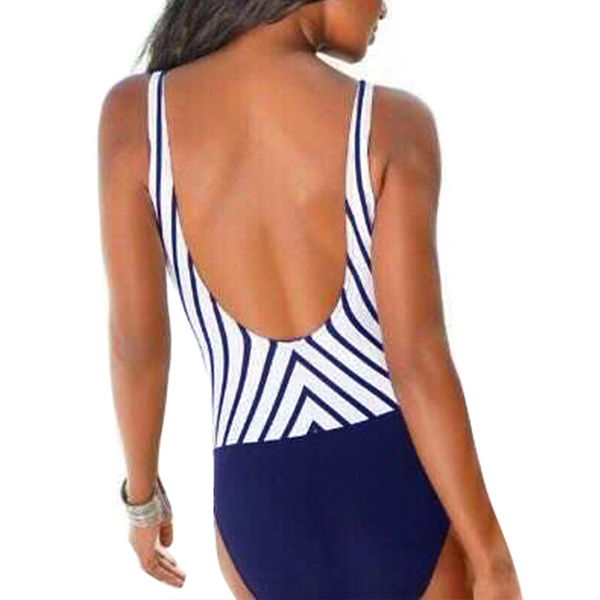 Fashion Stripe Printed Backless One-piece Swimsuit