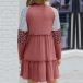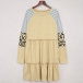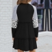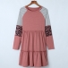 Fashion Stripe Printed Leopard Printed Long Sleeve Crew Neck Tiered Dress