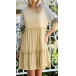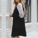 Make a bold statement with this fashion-forward tiered dress. The combination of stripes and leopard print along the long sleeve creates a unique and eye-catching look that is both trendy and stylish.While the tiered silhouette adds volume and movement to the dress. Pair it with boots and a statement belt for a chic and fashionable ensemble!