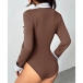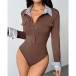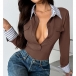 This bodysuit features contemporary fashion styling with dynamic stripe printed spliced construction and classic lapel collar design for versatile tailored sophistication. Pair with high-rise bottoms for fashion daily wear.