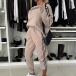 This trendy set features a sporty stripe print that adds a fun and athletic touch to your outfit. The sweatshirt is cozy and casual, perfect for lounging or running errands, while the sweatpants offer a relaxed fit for all-day comfort. Pair the set with sneakers for a sporty and chic ensemble.
