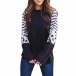 Fashion Striped Leopard Spliced Long Sleeve Round Neck T-shirt