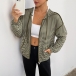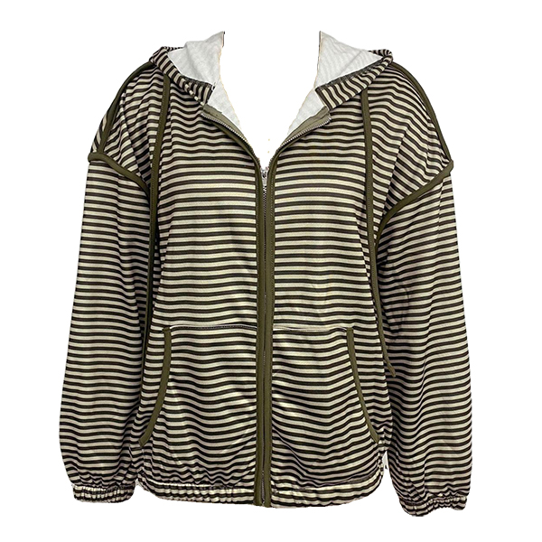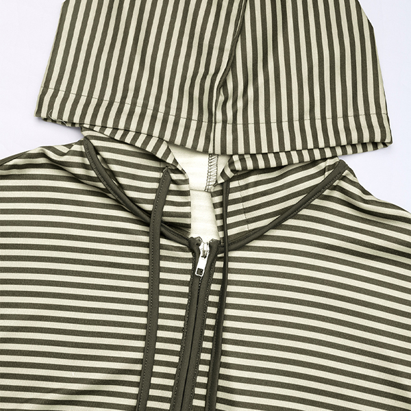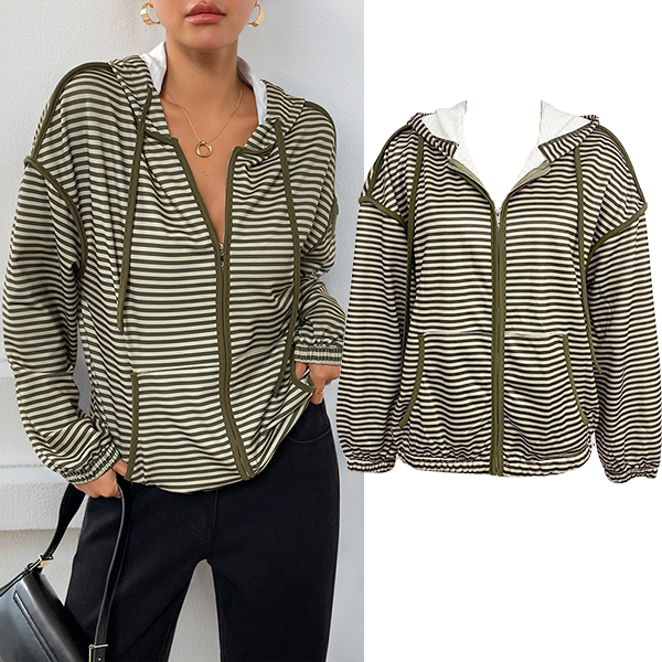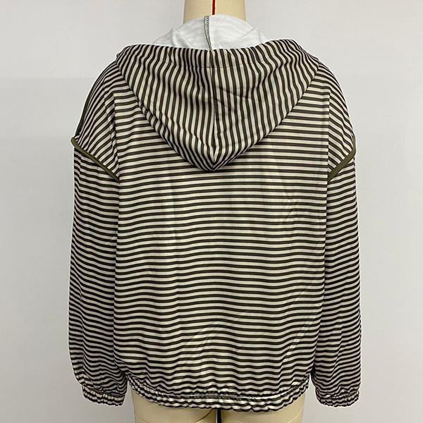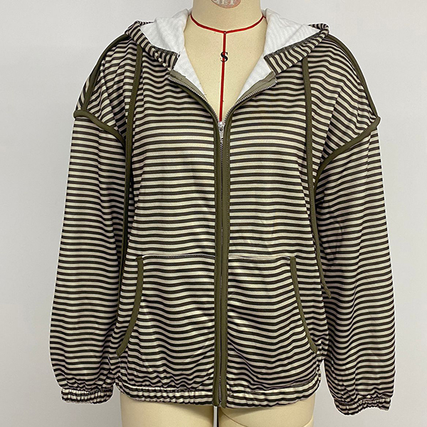 Fashion Striped Printed Long Sleeve Drawstring Hooded Front Zipper Sweatshirt Jacket