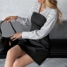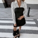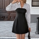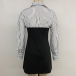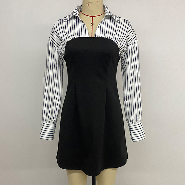 Fashion Striped Printed Stand Collar V-neck Long Sleeve Mock Two-piece Dress