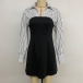 This clever design creates the illusion of layered sophistication in a single streamlined piece. The striped print brings classic nautical charm with timeless visual appeal, while the mock two-piece construction offers the polished look of coordinated separates with the ease of one garment. The stand collar adds structured elegance and contemporary refinement. Perfect for busy lifestyles that demand effortless elegance.