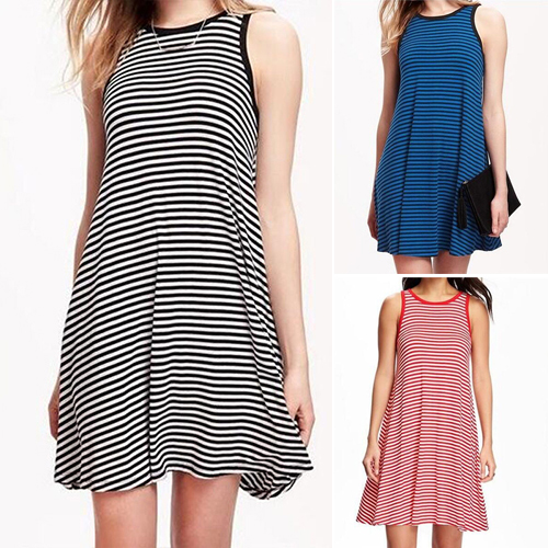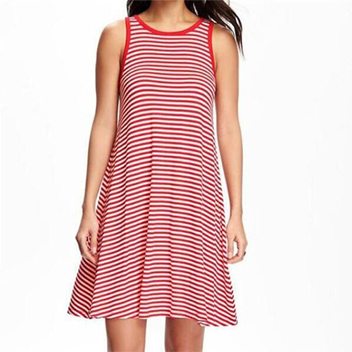 dress in some sunny days. The dress features soft and cozy material, with sleeveless and striped