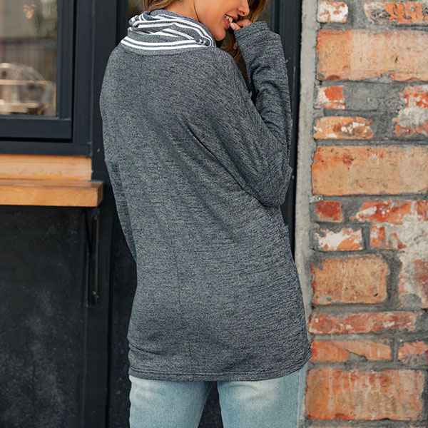 Fashion Striped Spliced Cowl Neck Long Sleeve T-shirt