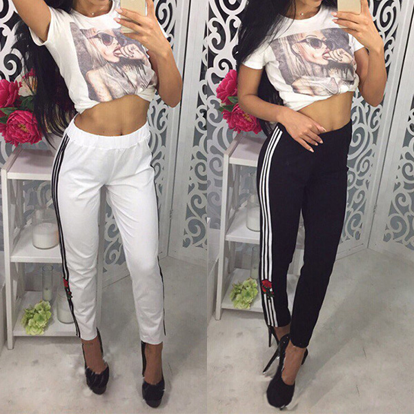 tailored with an elastic waist,this pants is sure to keep you comfy all day. Moreover,its striped spliced design on both side