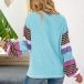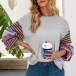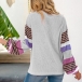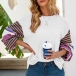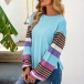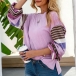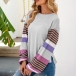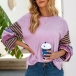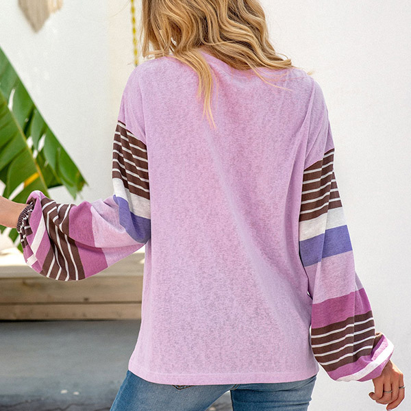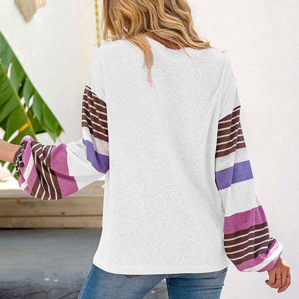 Fashion Striped Spliced Lantern Sleeve Round Neck T-shirt