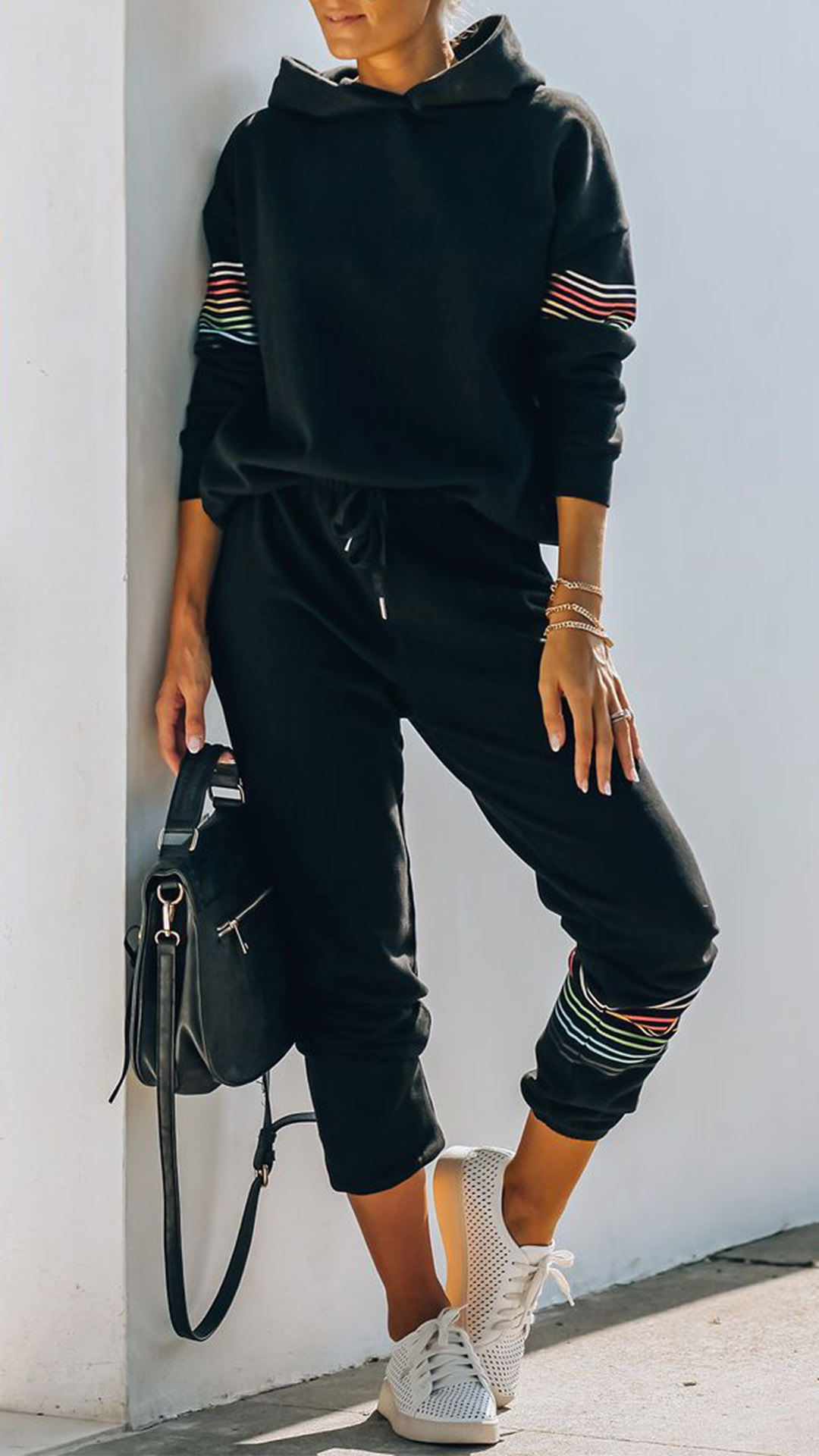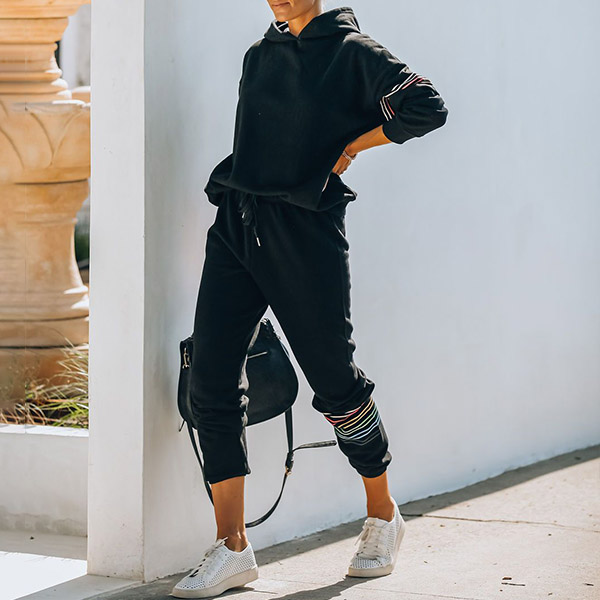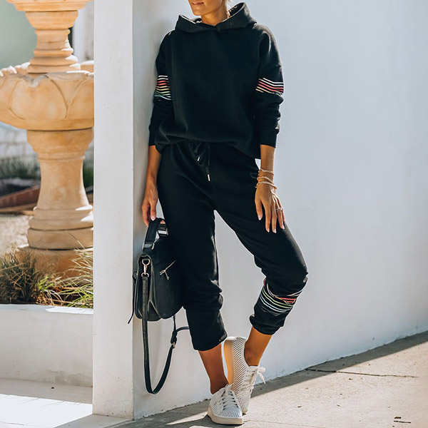 As for your sports time and casual weekends,this cozy,relaxed two-piece set can be your wise choice. The stripe spliced design breaks the simple and dull design style. Including a long sleeve hooded sweatshirt and a pants,crafted from soft and breathable fabric,this two-piece set can give you a comfortable day. So why not add them to your casual wardrobe ensemble?