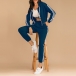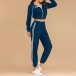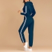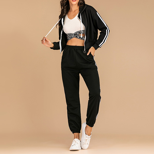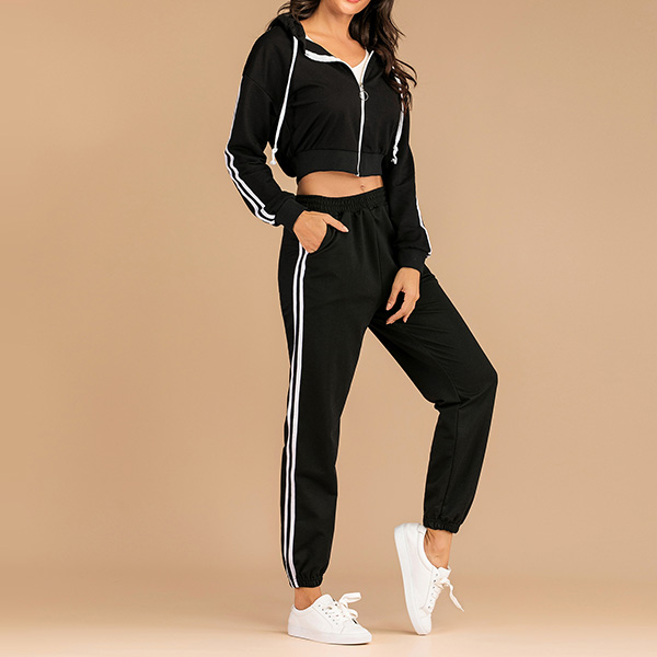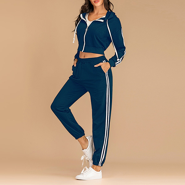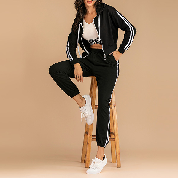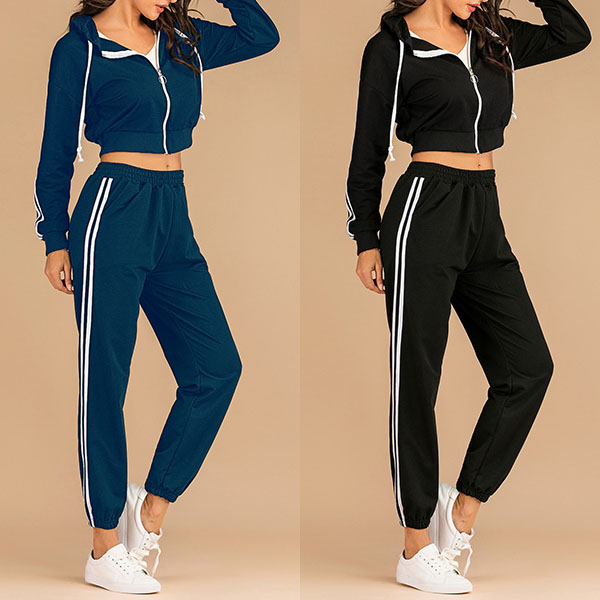 If you are sports lover,you can not put down this comfortable and stylish sweatshirt suit.The stripes on the sleeve and pants will make you look slimmer and taller.If you like, you can show your charming waist line in a generous way. Perfect fit for your sports time and casual weekends.
