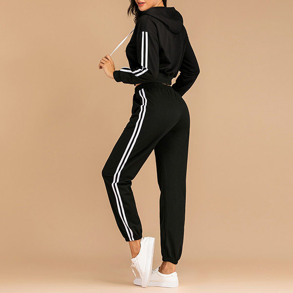Fashion Striped Spliced Long Sleeve Hooded Top + Pants Two-piece Set