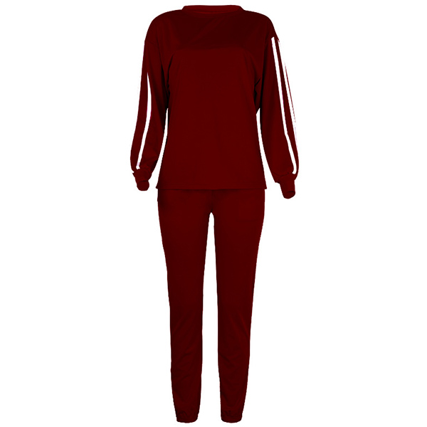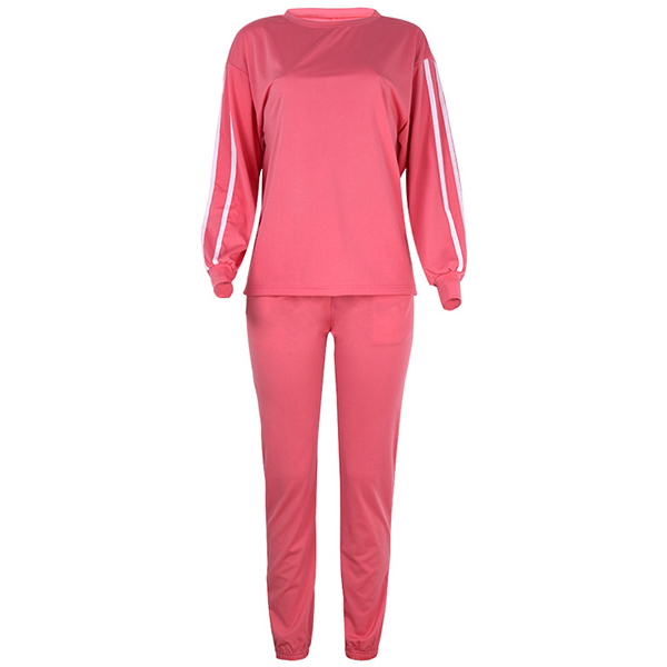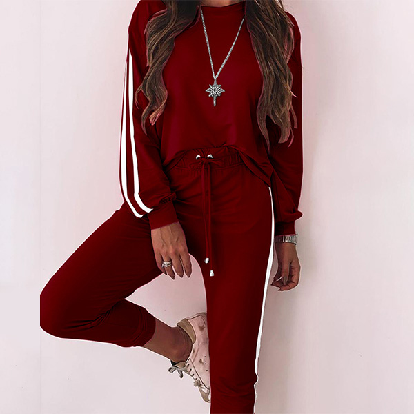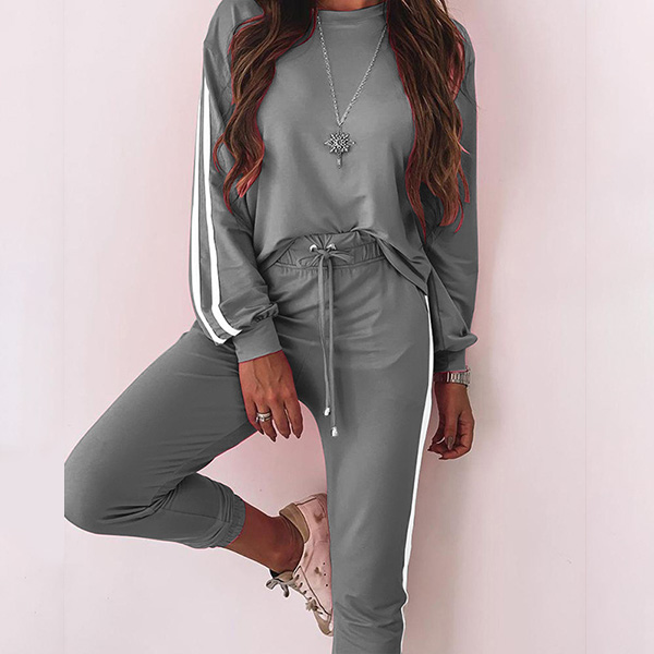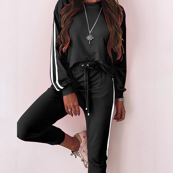 As for your sports time,this two-piece set would be your wise choice. The striped spliced design breaks the simple and dull design style. Including a long sleeve round neck sweatshirt and a pants,its soft and breathable fabric can ensure you a comfortable day. You can trust in this two-piece set to give you a casual,relaxed yet stylish style.
