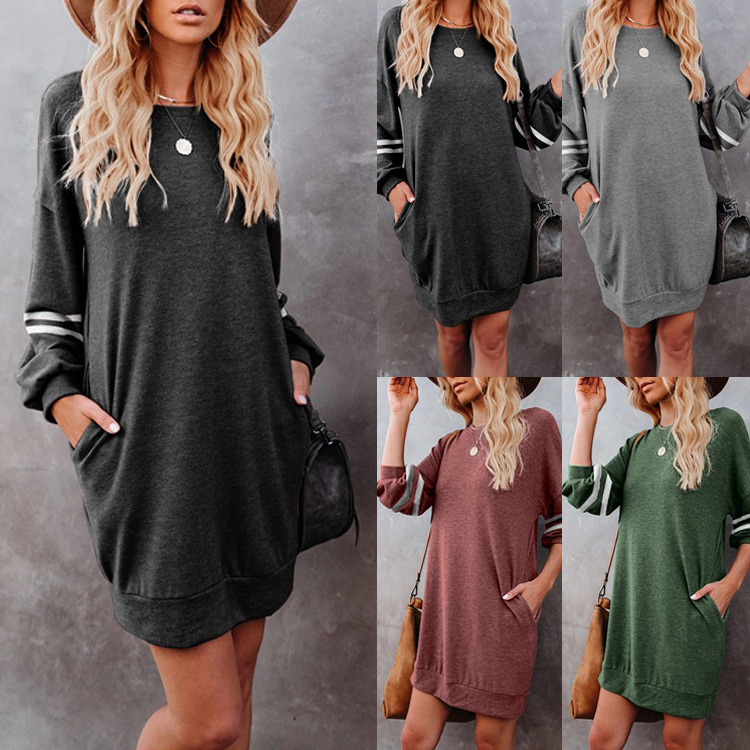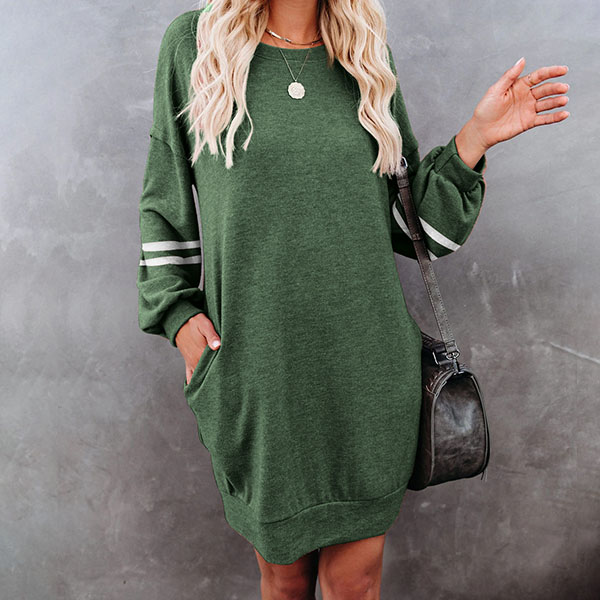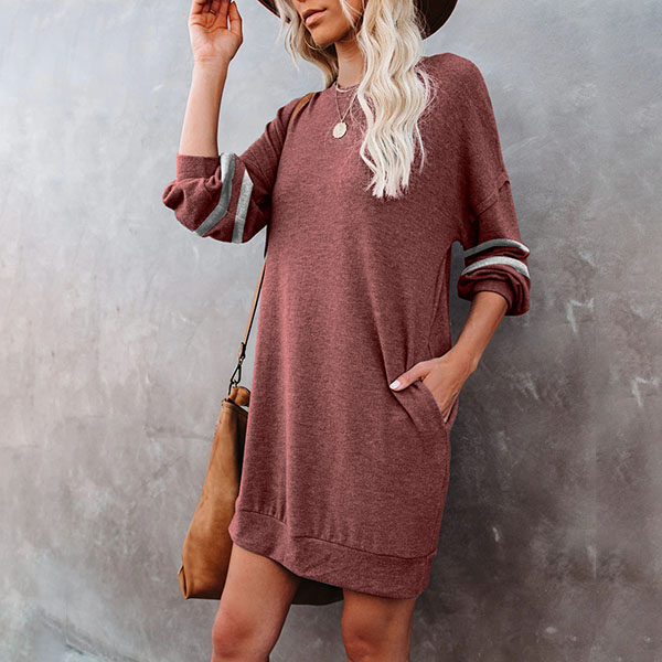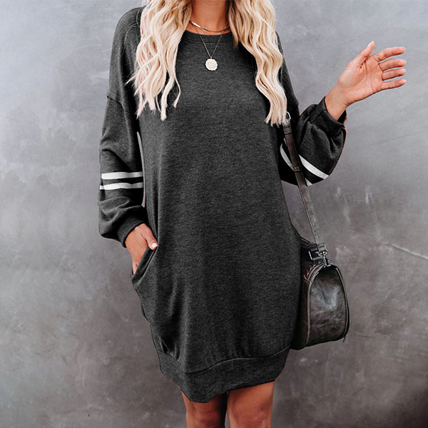 For your rushed mornings,this easy-to-wear t-shirt dress can be your perfect partner. The striped spliced design at the sleeve part will enrich the design style. Crafted from soft and breathable fabric,with long sleeve and round neck design,this piece can ensure you a comfortable day.