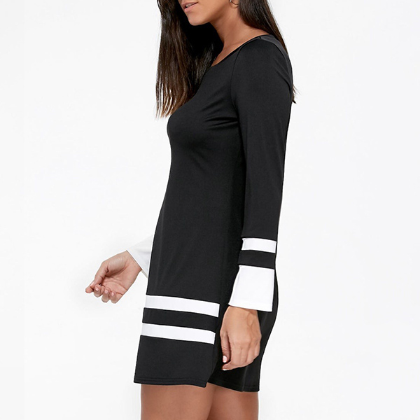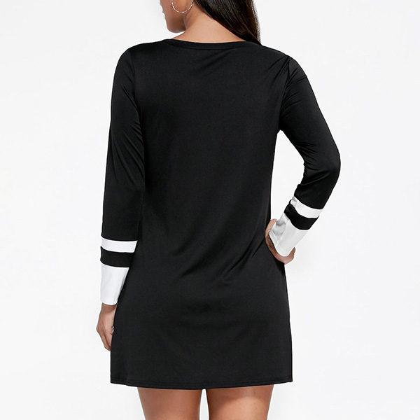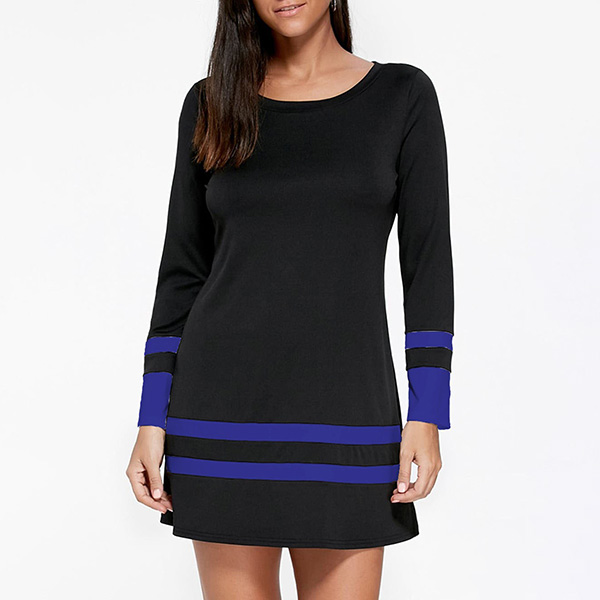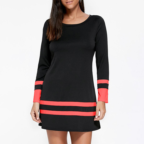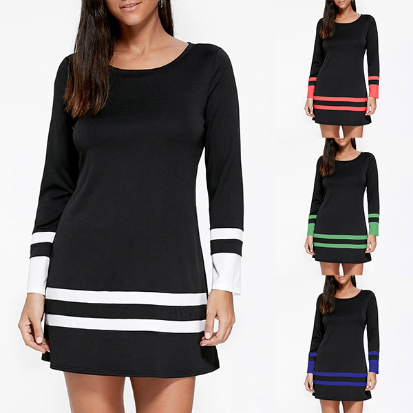 On your rushed mornings,you must have no time to think about what to wear for your busy routine,so this easy-to-wear t-shirt dress is a perfect solution. The striped spliced design will break the simple and dull design style. Finished with long sleeve and round neck design,this dress knows how to give you a cozy yet stylish style.