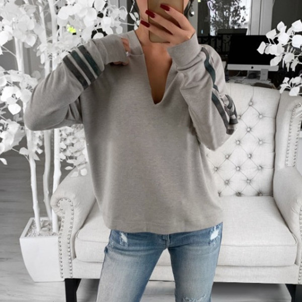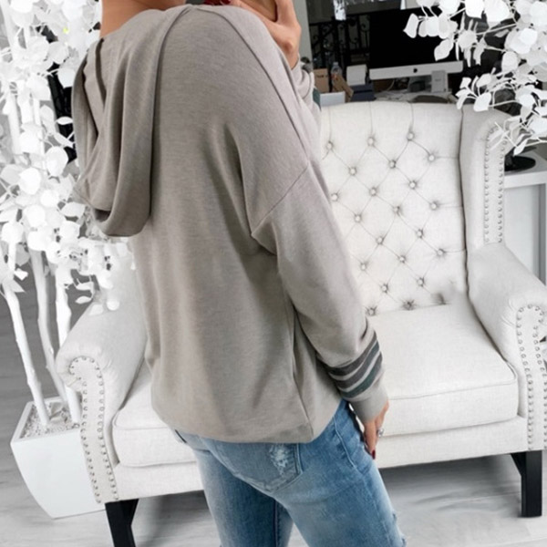 Fashion Striped Spliced Long Sleeve V-neck Hooded Sweatshirt