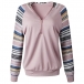 Fashion Striped Spliced Long Sleeve Zipper V-neck Top
