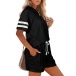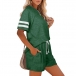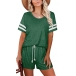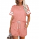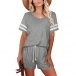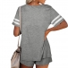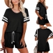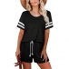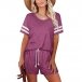 Fashion Striped Spliced Short Sleeve Round Neck Top + Shorts Two-piece Set