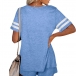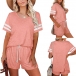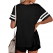 For your home time and casual weekends,this two-piece set can be your perfect choice. The striped spliced details will enrich the design style. Including a short sleeve round neck t-shirt and a shorts,crafted from soft and breathable fabric,this two-piece set can promise you a comfortable day. Add them to your casual wardrobe ensemble!