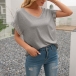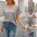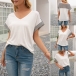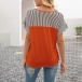 Fashion Striped Spliced Short Sleeve V-neck Casual T-shirt