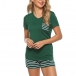 Fashion Striped Spliced Short Sleeve V-neck T-shirt + Shorts Two-piece Set