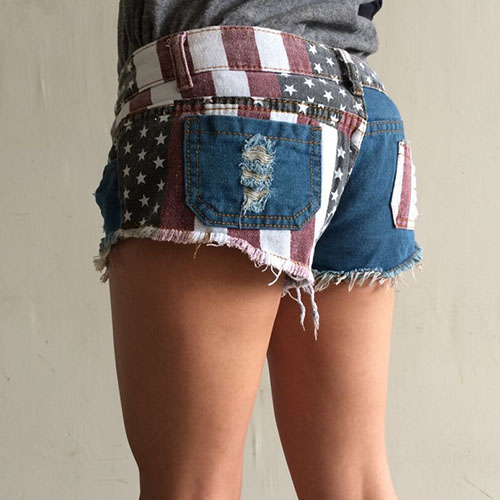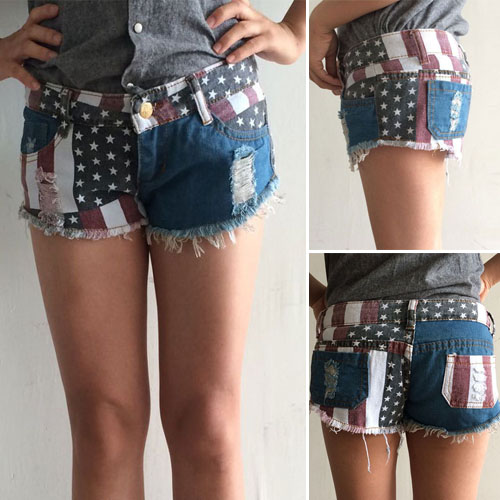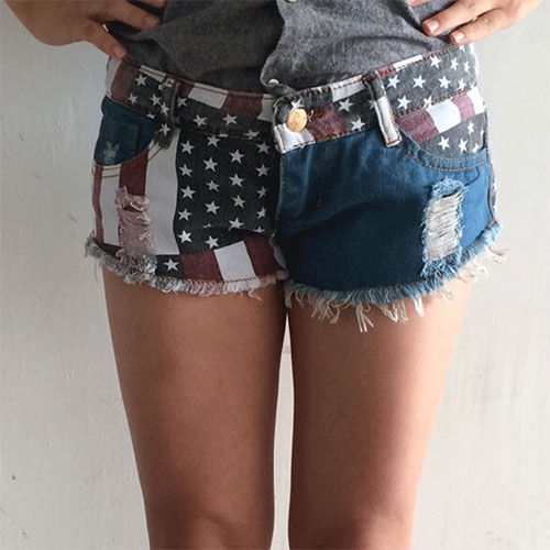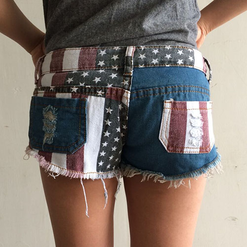 from others shorts. With American flag printed design, eye-catching and attractive. Ripped design