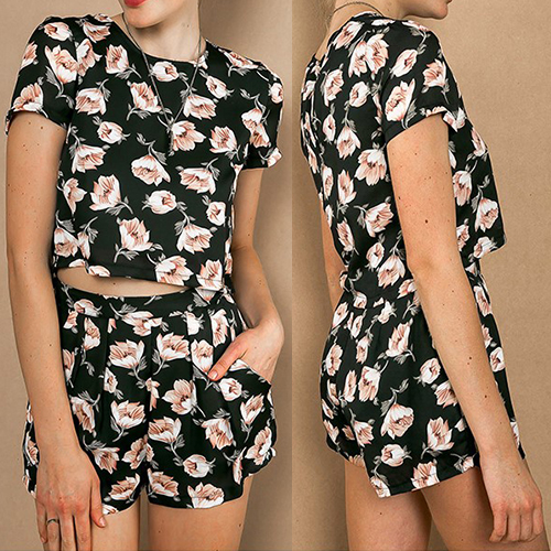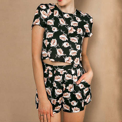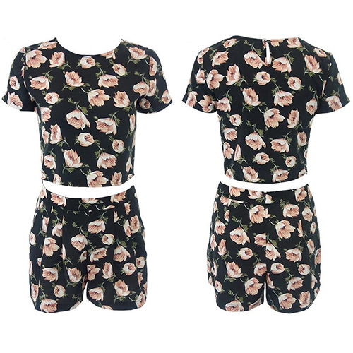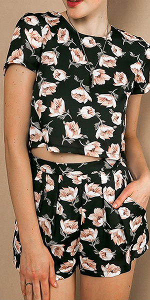 A floral printed two-piece set is a must-have in the summer for girls. The crop top and the shorts of this two-piece