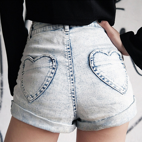 In girls's closet, they always lack of a denim shorts. With heart-shaped pockets design, this denim