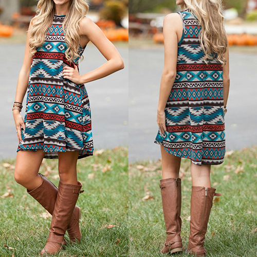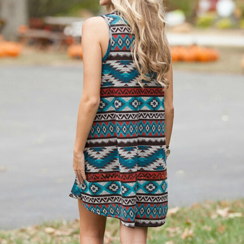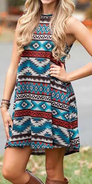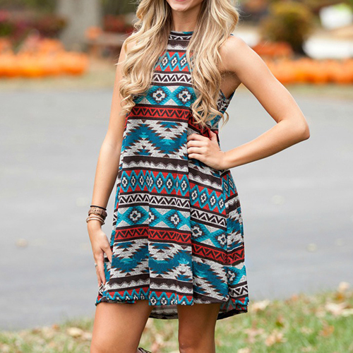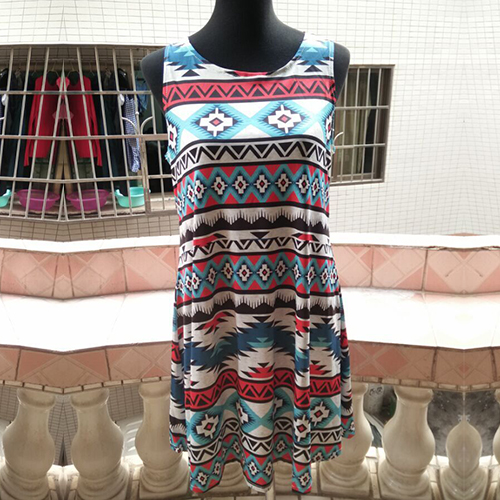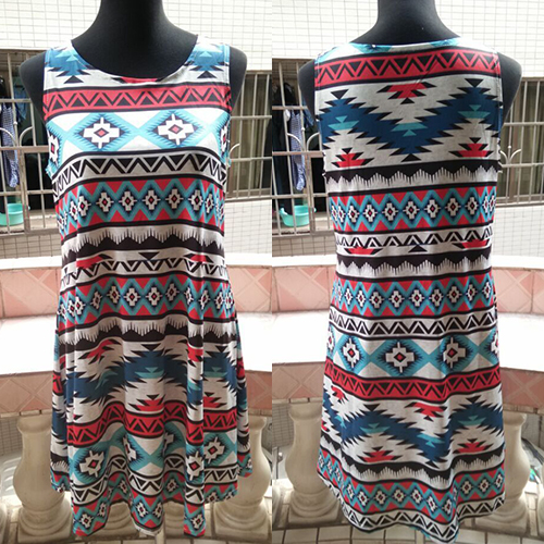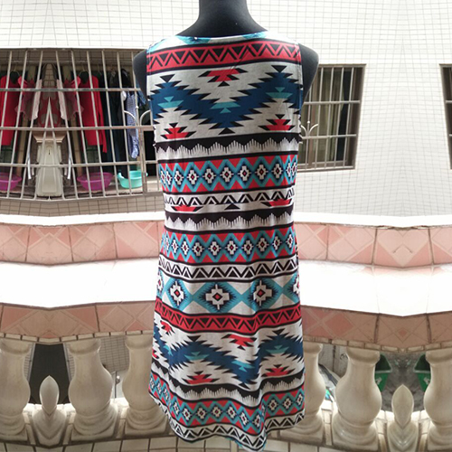 With abstract prints on this piece of cami dress, it looks more ethnic style but also fashion and stylish.