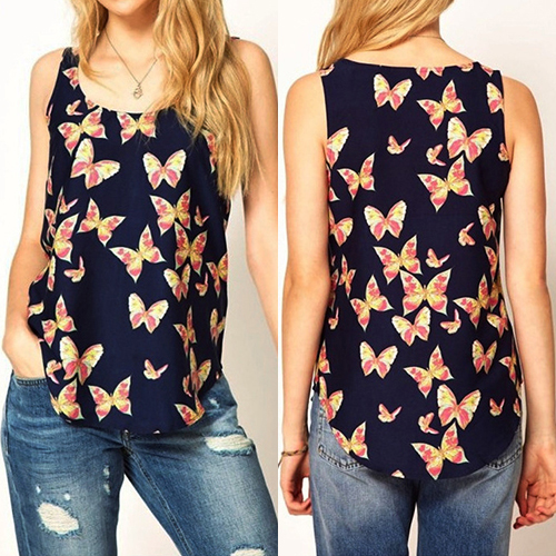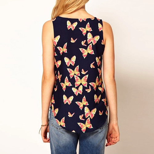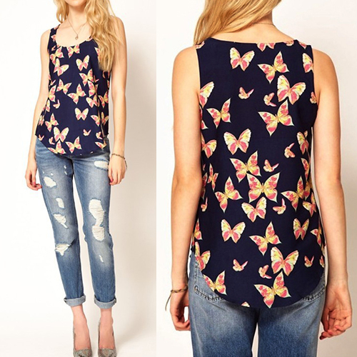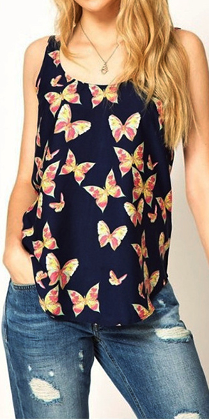 ordinary. But with butterfly prints on this top, it looks more fashion and colorful. Contributed by the