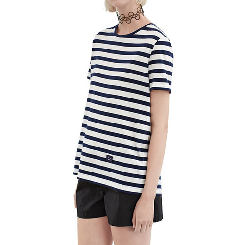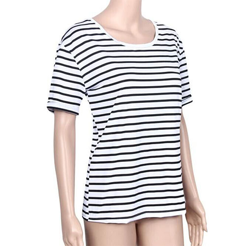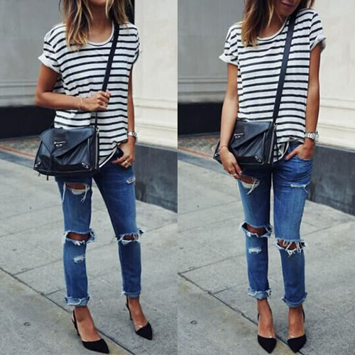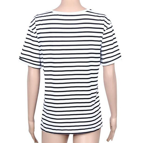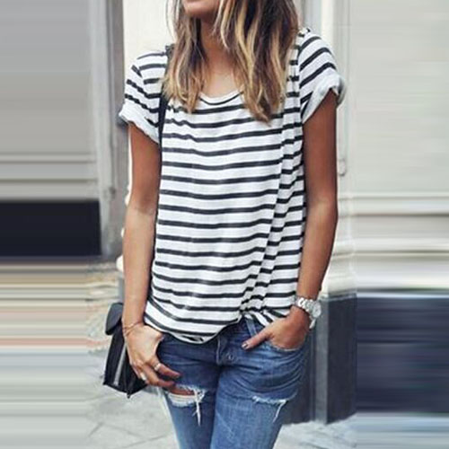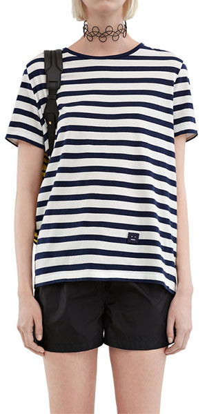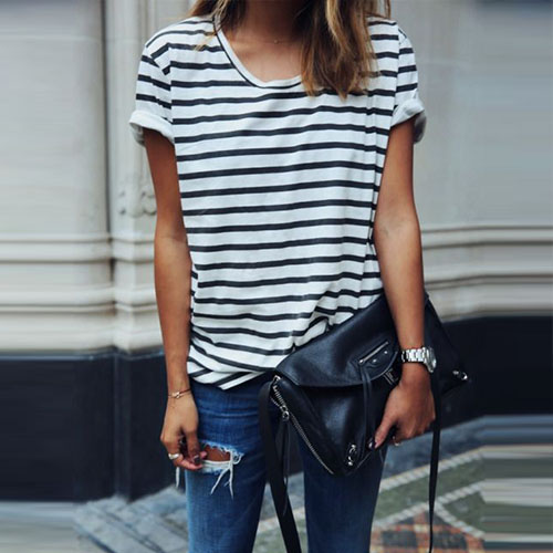 This piece of t-shirt would be simple and ordinary if it is only styled with stripes. But fortunately there is
